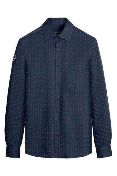 La chemise Atlantic Escadrille se distingue par son imprimé discret et sa coupe ajustée. Confectionnée en 97 % coton et 3 % élasthanne, elle offre un confort optimal tout au long de la journée. Le patch Patrouille de France sur la manche signe subtilement son appartenance à l’univers de l’aéronautique.