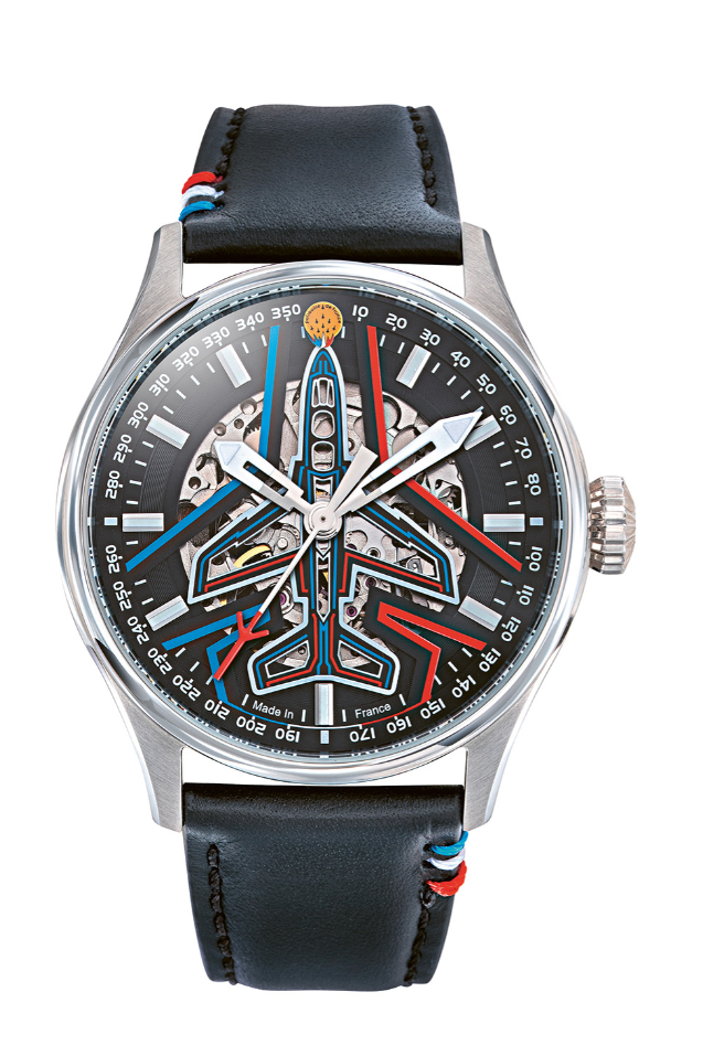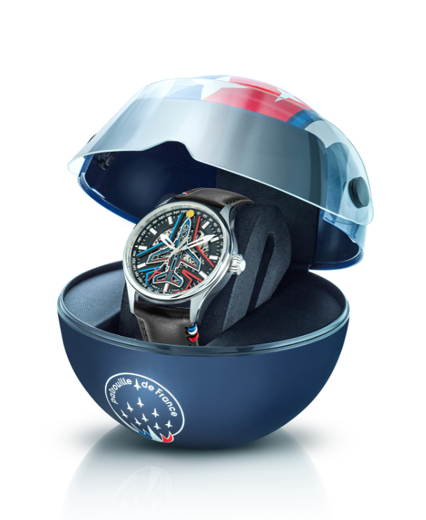 Patrouille de France Men's Watch Black Dial Steel Bracelet A2-100ID-668127Automatic, water-resistant to 100 metersStainless steel case and bezelBlue PVD bezel finishProtected crownPolished and brushed steel braceletDesign and manufacture: LIP workshops in Besançon