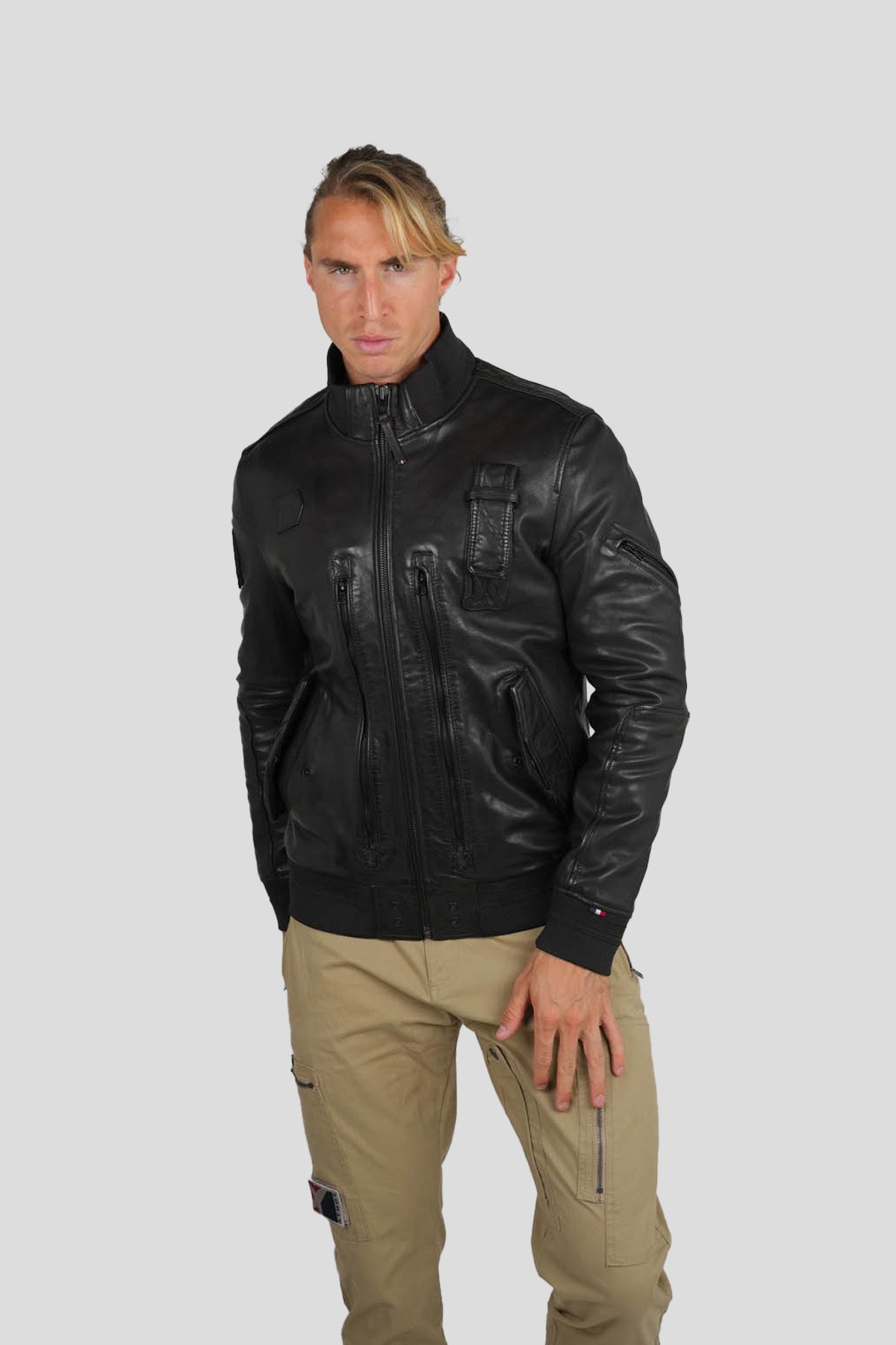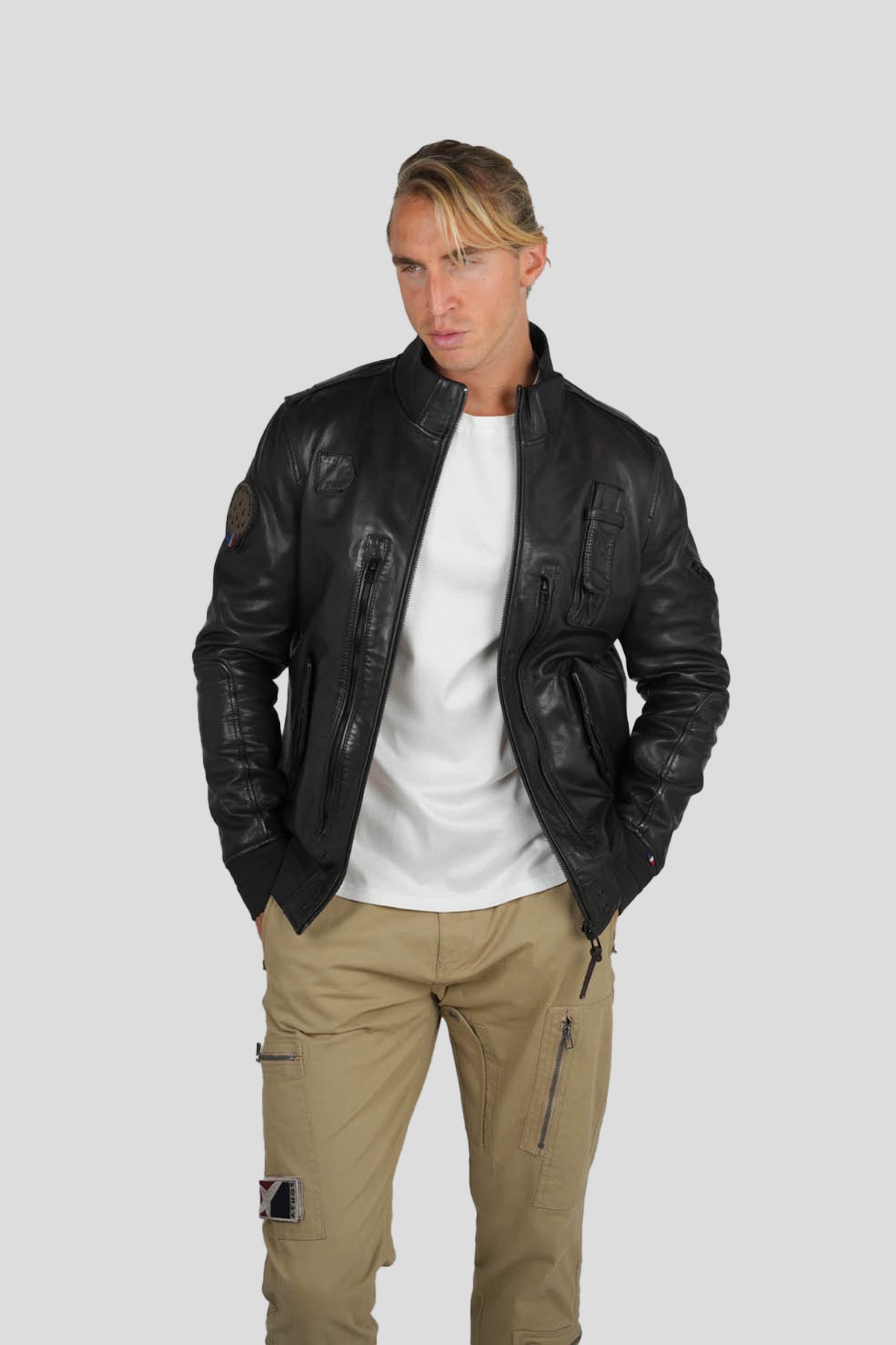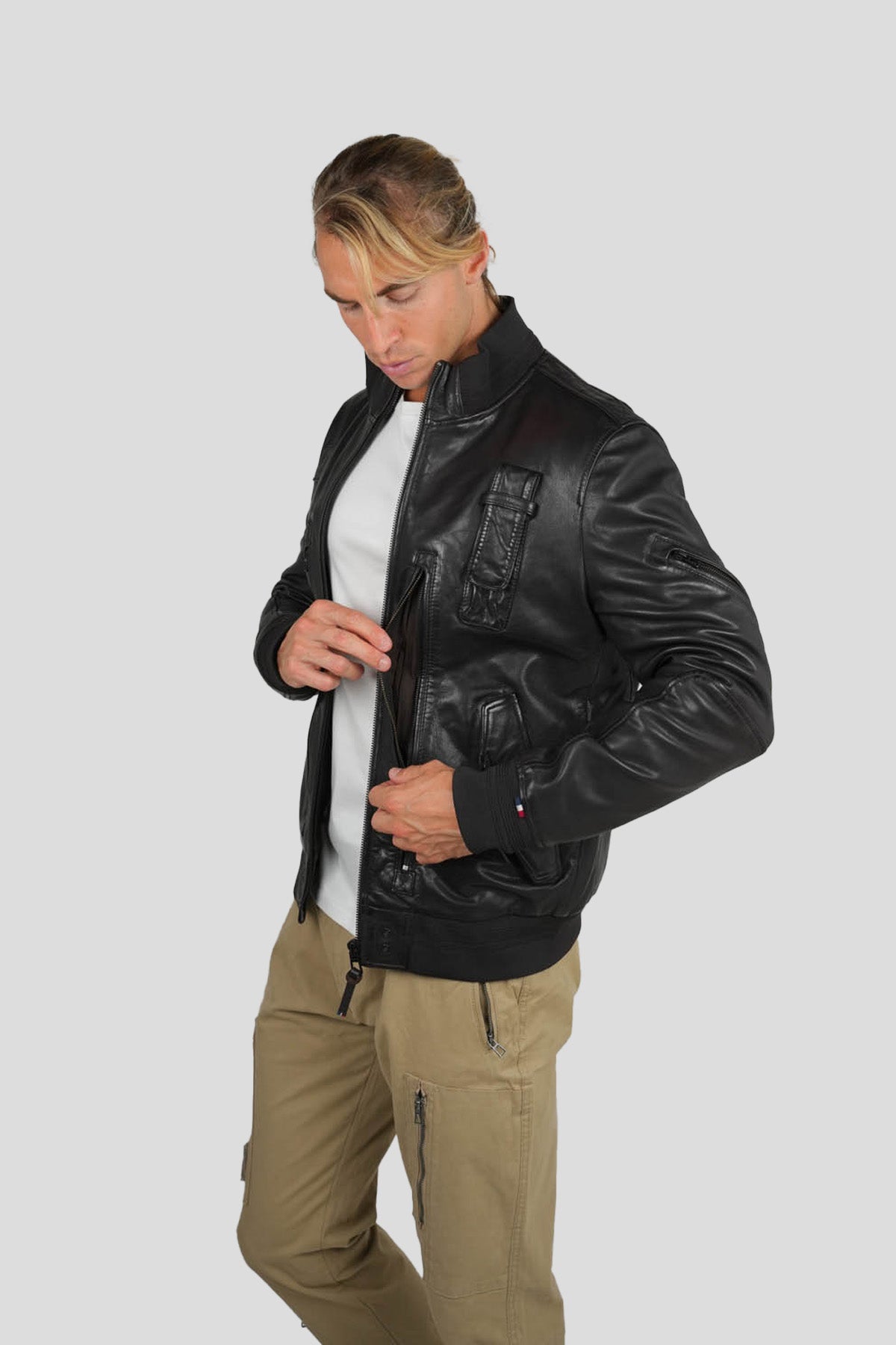 Inspiré des vestes d’aviateur, le blouson CAPTAIN DITY impose un style affirmé et fonctionnel. Confectionné en cuir d’agneau, il se distingue par ses multiples rangements (2 poches latérales zippées, 2 poches latérales a clips , 1 avec rabat et 1 poche sur la manche).