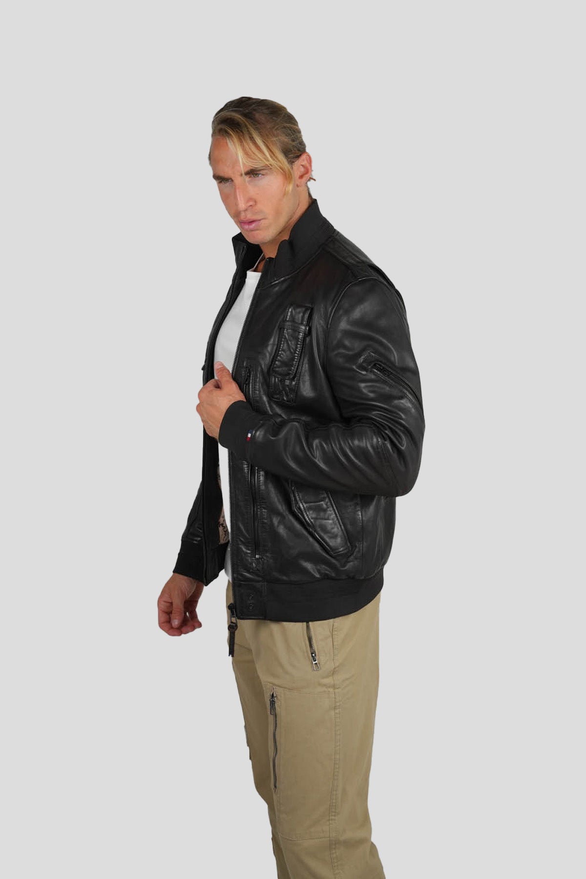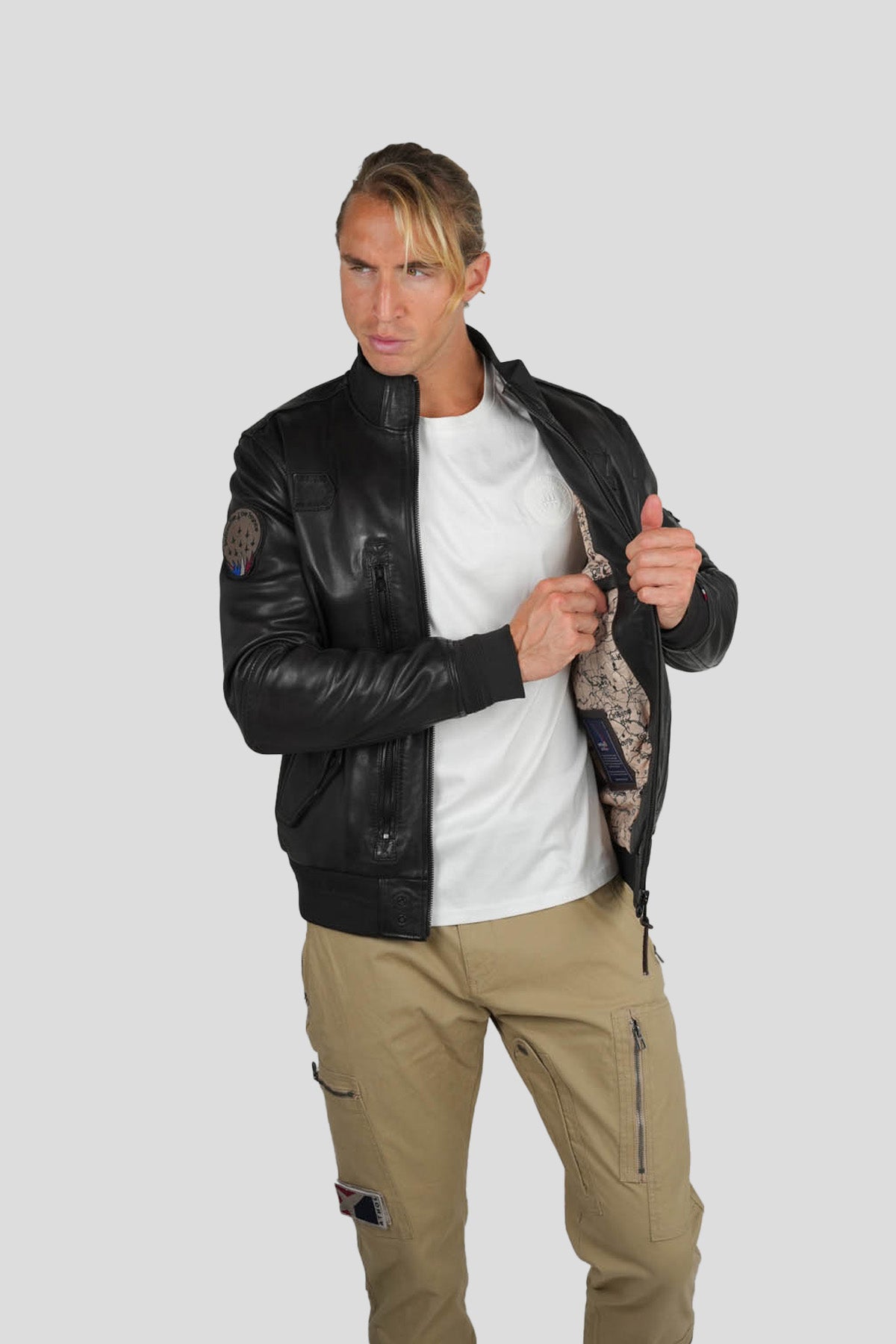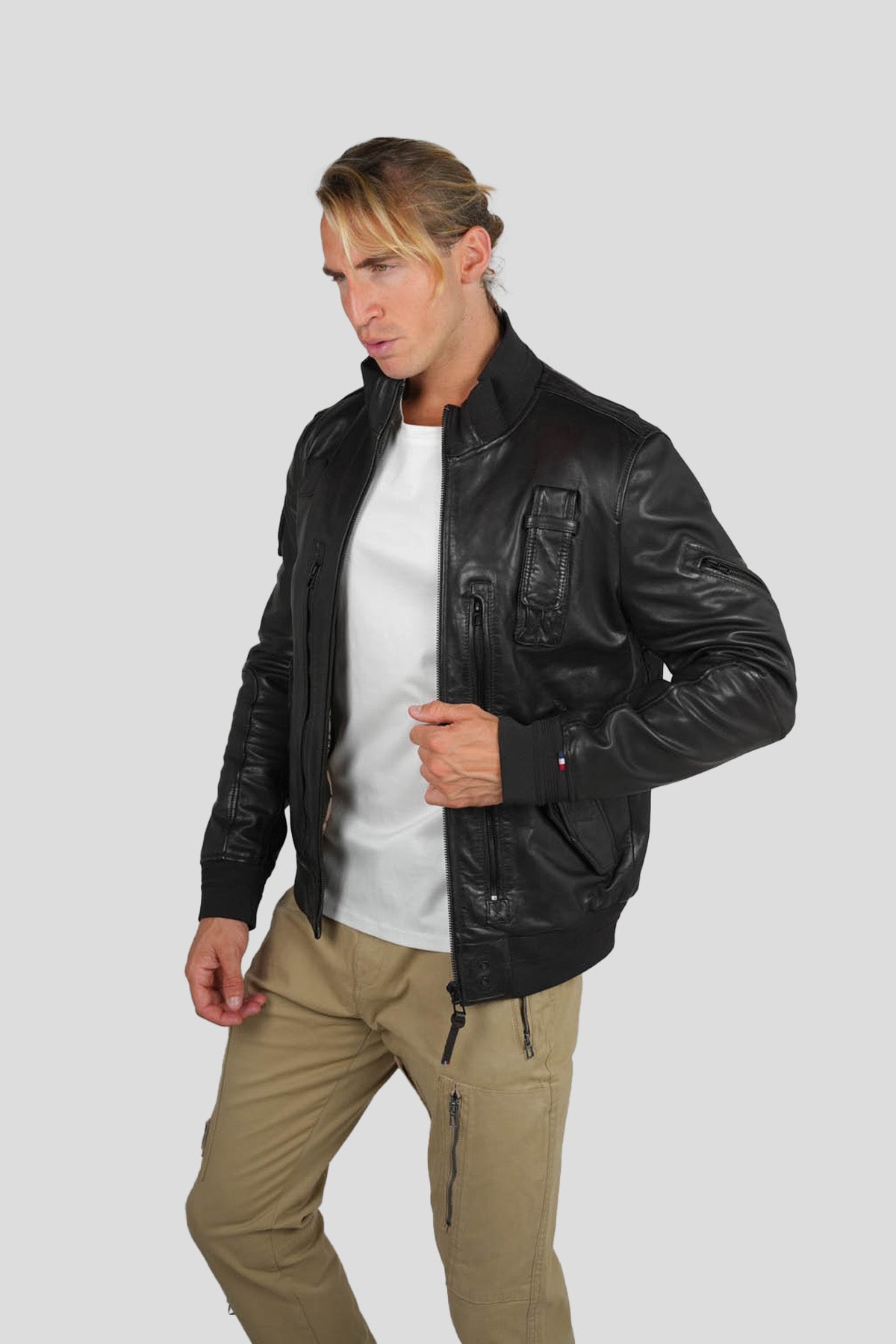 Inspiré des vestes d’aviateur, le blouson CAPTAIN DITY impose un style affirmé et fonctionnel. Confectionné en cuir d’agneau, il se distingue par ses multiples rangements (2 poches latérales zippées, 2 poches latérales a clips , 1 avec rabat et 1 poche sur la manche).