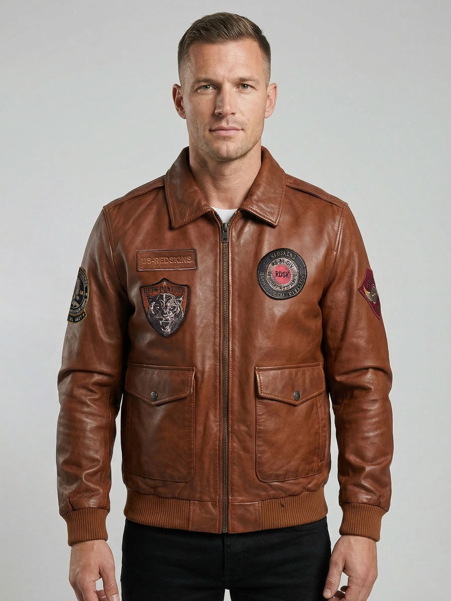 Le blouson en cuir marron FORCE UNIT est l'élément essentiel pour affronter les saisons fraîches avec style. Confectionné en cuir d'agneau, il allie durabilité et confort, tout en offrant une esthétique classique et intemporelle.