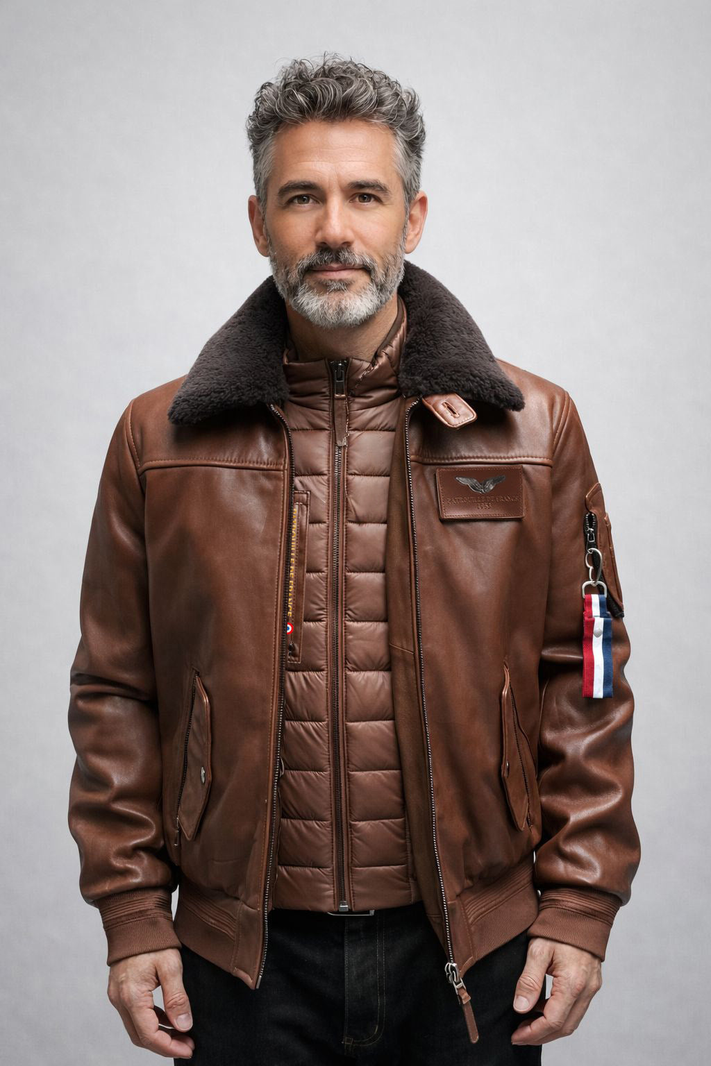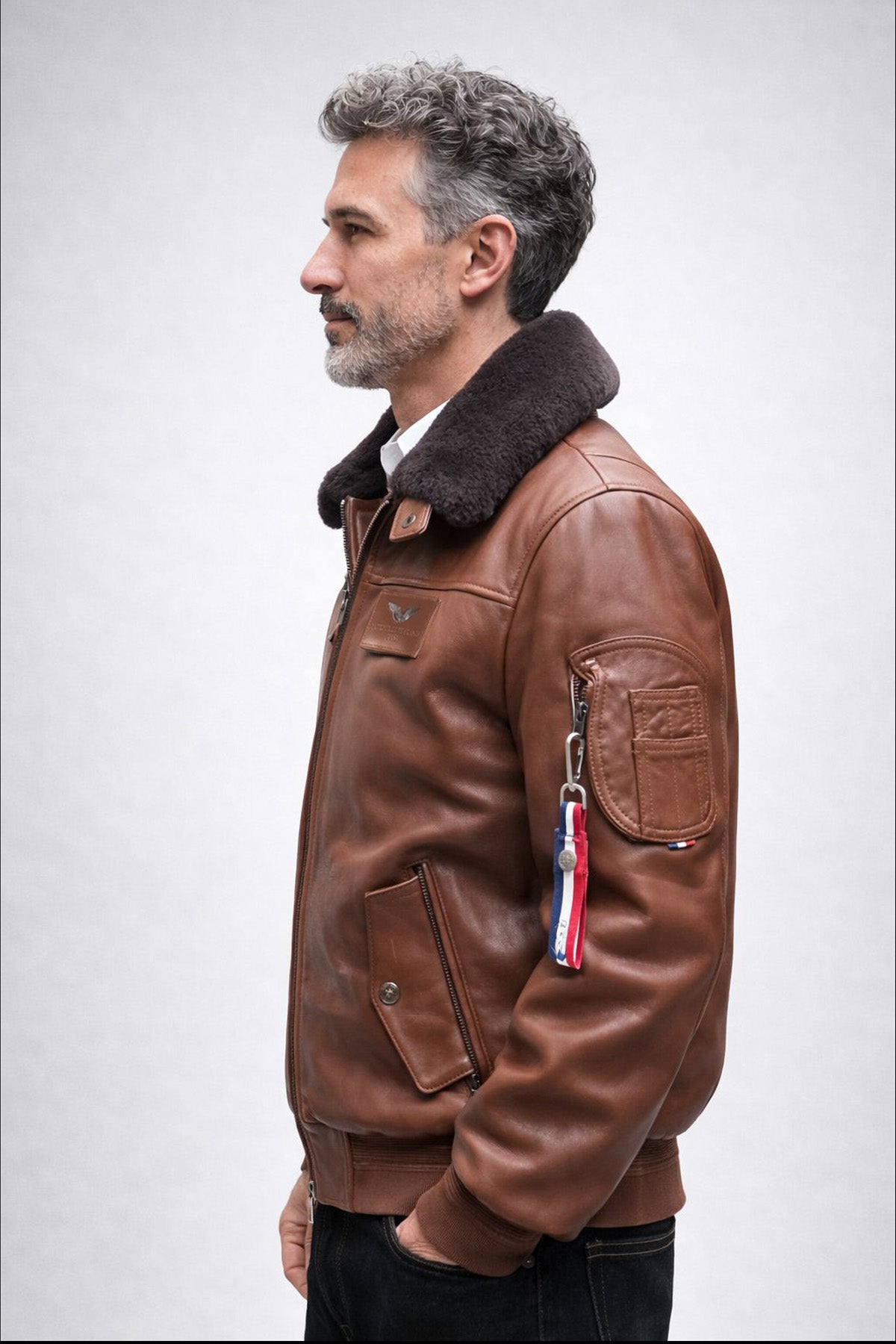 Le Rafal 2.0 Ycon incarne l’esprit des aviateurs avec un style puissant et racé. Confectionné en cuir d’agneau, il offre une grande souplesse et une coupe structurée. Doté d’un col amovible en mouton, de poches zippées, d’une poche poitrine à rabat et d’une poche sur la manche, il mêle esthétique et fonctionnalité. Le patch Patrouille de France signe une pièce à l’ADN résolument aérien.