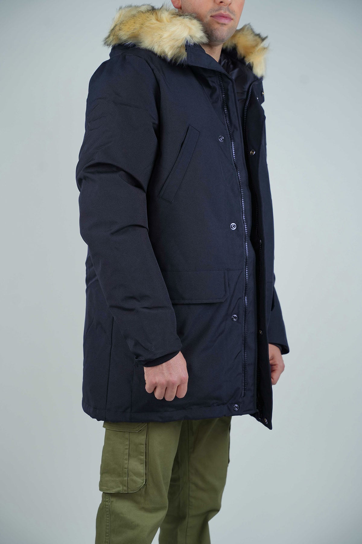 PARKA ADULTE 7812 VENISE ; Coupe longue ; Capuche avec fourrure extérieure ; Fermeture pression et zip ; 2 poches latérales ouvertes au niveau de la poitrine avec logo Redskins sur celle de gauche ; 2 poches latérales à rabat avec pression ; Poche zippée intérieure ; Patch métallique Redskins sur l'épaule gauche ; Petite poche zippée sur l'épaule gauche
